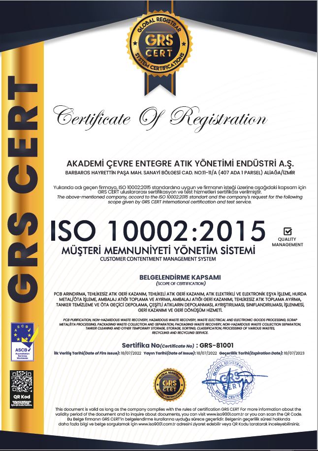 AKADEMİ ÇEVRE ENTEGRE ATIK YÖNETİMİ ENDÜSTRİ A.Ş.